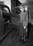 Mrs. T. J. White is a ninety-year old resident of Coleman, Texas. In 1872 she graduated from Baylor Female College at at Belton, Texas. Mrs. White is said to be the oldest living graduate of what is now University of Mary Hardin-Baylor. She is shown standing in front of an automobile. The passenger's door is swung open as Mrs. White prepares to climb inside. She is wearing a hat, button-up blouse and a skirt.