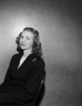 Miss Louise Lively is the general chairman of Beta Alpha Rho's 13th Annual "Bosses Banquet." She works as the secretary to J. D. Howard, district supervisor of the Texas Unemployment Compensation Commission. Miss Lively is shown sitting in a chair, wearing a blouse, a dark blazer and a matching skirt.