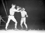 Golden Gloves boxer and Texas Christian University (T. C. U.) student Johnny Campbell (left) and fellow boxer Rudy Mendoza.