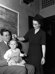 Mr. and Mrs. O. E. Castillon are shown posing with their young son, Tommy. Mr. Castillon is a veteran of the United States Army Air Force, where he served as a Corporal. He is dressed in a suit and holding Tommy on his lap. Mrs. Castillon is an employee at the Fort Worth Star-Telegram. She is wearing a hat, collared blouse, and a skirt. She is brushing her son's hair. Tommy is dressed in a long-sleeve shirt and overalls.