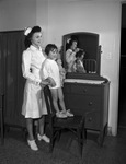Menge, Murl; Filkins, Maxine; Lena Pope Home; Nurses; Nurse Uniforms; Slippers; Chairs; Dressers; Combs; Hairdressing; Grooming; Dolls