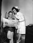 Harris Hospital patient Jimmy Burns, 20, with nurse Mary Ellen Cassell, selecting food from a menu.