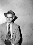 Hugh Cowdin is an employee with the Fort Worth Star-Telegram. He writes a weekly column on dogs, promotes dog shows, and writes book reviews. Mr. Cowdin began his printing career in the office of the Grand Prairie Texan. He has since worked his way up the ranks, through an apprenticeship at a commercial printing office. Mr. Cowdin is dressed in a fedora and a suit with a checkered sports coat.