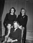 Three generations of the Walters Family are gathering in Fort Worth, Texas Standing, left to right, is Miss Charlotte Walters and her mother, Mrs. E. T. Walters. They traveled made the journey from Butler, Missouri. Seated is Mrs. C. E. Terrell, mother of Mrs. Walters. Charlotte is wearing a button-up dress. Mrs. Walter is wearing a dark dress. Mrs. Terrell is wearing a dress with a brooch. She is reading the "Green Years" by A. J. Cronin.
