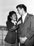 Golden Gloves boxers Aurelia Riojas, Worth Hotel elevator operator, with Rudy Martinez of El Paso, Texas.