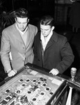 Golden Gloves boxers Bill Mills, Plainview, Texas (left) and Bill Henderson, Texas Tech heavy from Leavelland, Texas playing pinball machine.