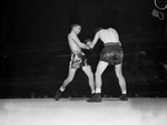 Golden Gloves boxers Roy Steward of the North Texas Agricultural College (N. T. A. C.) (left) and Joe Kelly, Brownwood, Texas.