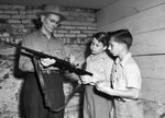 Fort Worth Rifle and Pistol Club president Ewell Cross (left) exaiming a gun with James Robinson, 12, and Don McConnell.