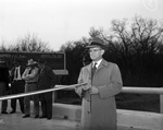 Official opening ceremony for new Hwy. 80 section between Fort Worth and Dallas; Hubert Harrison, representative of East Texas Chamber of Commerce, holds the ribbon, 02/201947