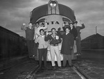 Texas Golden Glovers posed in front of a train are (from left) Wallace Willard, Tommy Barron, Valentino Luna, Tom Adams, Bill Henderson, James Baggett and Dan Stipanovich.