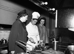 National Live Stock and Meat Board's Cooking School attendees (from left) Miss Anna Bines, Miss Doris Keefe and Ray Brumbelow.