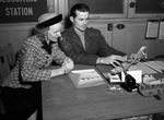 Techical Sergeant W. M. Monneyham of the United States Marine recruiting office with Mrs. Margaret Sharpe Locke.