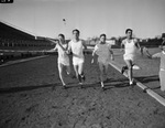 Texas Christian University (T. C. U.) track stars competing in the Southwestern Recreation Field and Track meet include (from left) Tommy Feik, Donlon and Gay Cazares.
