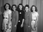 Star-Telegram cooking school pages are (from left) Betty Lou Berry, Deanie Archer, Janie Pharries, Mrs. Winnie Moss Addington and Miss Jeanne Shelton. All except Miss Berry are from Texas Wesleyan College.