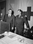 Red Cross Fund campaign participants Brigadier General Roger M. Ramey (right) commanding general of the 8th Air Force and Roland G. Mayer.