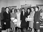 International Welcome Wagon Service Company "Welcome Wagon" (from left) Jeanne Sharpe, Dorothy Bordley, Mrs. Howard Holmes, Mildred Needham, Laura Harris, Jean Schulze and Nan Bratcher.