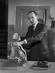 Don P. Tyler, cutting meat at the Star-Telegram cooking school.