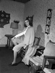 Miss Janet Morgan modeling pale pink wool gabardine mix-matchables at The Fair Store style show luncheon