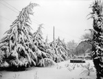 Snow covered yard of Mrs. Homer Hill, 2709 Gunther Avenue, Diamond Hills neighborhood, Fort Worth, Texas.