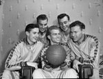 Texas Wesleyan College (T. W. C.) basketball team substitutes (from left) Richard Cozad, Clifford Hughes, Douglas Higgins, Gus Weber and Wally Patton.