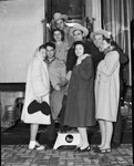 Texas Wesleyan College (T. W. C.) women saying goodbye to Rams basketball players departing for Kansas City, Kansas. Left to right, Ted Nicksick and wife, E.F. Parham, Dude Thurston, Clifton McNeeley, Peggy Gallargher, Hardie Fortenberry and Betty Rice.