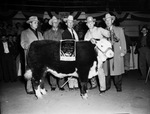 Grand champion steer, Little Guy, with Frank Morris at halter, boy who fed him. Others, (from left) Jack Turner, Kansas city, Kansas, Guy Garren, Van Horn, Texas rancher who bred the steer, J. Wiley Holmes, Morris, and W. R. Watt at the Southwestern Exposition and Fat Stock Show.