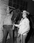 "Queen of the Day" Mrs. Hack Veale of Breckenridge, Texas with her husband and horse at the Southwestern Exposition and Fat Stock Show.