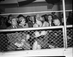 Rodeo spectators at the Southwestern Exhibition and Fat Stock Show include (front row, from left) L. S. Stemmons, Dallas, Texas, Mrs. John M. Fouts, Colonel Henry Hutchings Junior and (back row) Mrs. Hutchings, Fouts, and Mrs. Stemmons.