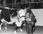 Patsy Moody photographed kissing a champion steer at the Southwestern Exposition and Fat Stock Show.