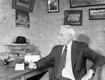 A man sits in a chair at a desk. 03/11/1947