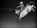 Kid Fletcher, El Reno, Oklahoma on Brahma bull at the Southwestern Exposition and Fat Stock Show.
