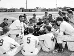 Manager Les Burge talking to the Fort Worth Cats baseball team.