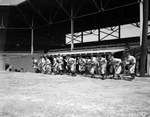 Fort Worth Cats breaking from the dugout to start Spring training practice in Florida.