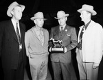Four men who travelled miles to attend the American Quarter Horse Association show during the Southwestern Exposition and Fat Stock Show are (from left) G. G. Lankin, Westminster, California, Frank Vessels Senior, Long Beach, California, Walt Haythorn, Ogallalla, Nebraska and Raymond Hollingsworth, Amarillo, Texas.