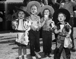 (From left) Sharon Humerson, Jackie Humberson, five and Craig (Corky) Doyle, two, watching the trained monkey at the Southwestern Exposition and Fat Stock Show Midway. Their aunt Sanddra Tawater, four, is third from left.