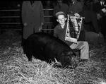Walter Harris Junior Apache, Oklahoma with his grand champion barrow, "Poland China," which was sold to Charlie Hillard at the Southwestern Exposition and Fat Stock Show.