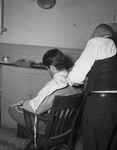 Billy Joe Breeden getting hair cut from J. B. Williams.