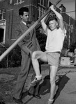 Earle Meadows, Olympic pole vault champion, giving instructions to Robert Hoblitt of the Paschal High School track team.