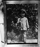 A calm, soft-spoken little woman whose brown hair is turning to silver is "mother" to 230 children of the Lena Pope Home, for which as expansion program on a 10-block area in Arlington Heights is in the making. She is Mrs. Lena Holston Pope, who has shared the love and affection of a mother with more than 5,000 children since her own first-born, Conrad Pope died at the age of seven in 1914. In this picture is a portrait of Conrad Pope. Conrad is wearing a hat and a long sleeve coat with pants. He appears to be standing in front of a railing covered in vine holding an unrecognizable item in his right hand which he places in between his shoulder blades and chest. Published in the Fort Worth Star-Telegram evening edition, March 19, 1947.