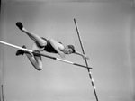 Bob Thomas, Arlington Heights High School all-district basketball player, jumping a hurdle in preaparation for the Southwestern Recreation Field and Track Meet.