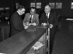 United States Veterans Administration workers Calvin O. Wiley (left) attempting to change his training, with L. B. Messersmith, center, and W. M. Lenderman.
