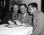 Jimmy Stewart (center), secretary of the Southwestern Conference and chief starter at the Southwestern Recreation Track and Field Meet, with his aides Rube Leissner (left) and Adrian Clark.