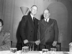 Max W. Ball (right) visiting statewide proration hearing at the Hotel Texas upon the invitation of Chairman Thompson.