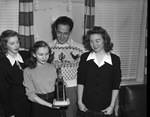Texas Wesleyan College (T. W. C.) play directors (left to right) Sherry Sherill, Dimmitt, Texas; Mary Lynn Wolfe; Ed. Toti, East Orange, New Jersey; and Marty Cockroft, Fort Worth, Texas.