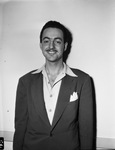 A. L. Gillespie III, winner of the Paul Lavalle Scholarship audition. Gillespie is a pianist. In the picture, he is wearing a suit and shirt with the first button undone and a handkerchief in the left pocket of his suit. He is smiling while posing for the picture in front of a plane background. Published in the Fort Worth Star-Telegram morning edition, March 22, 1947.