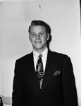 James W. Worrell, winner of the Student Musician auditions.. In the picture, Worell is wearing a suit and tie with a striped handkerchief in the left pocket of his suit while he smiles as he poses in front of a plain wall paper. Published in the Fort Worth Star-Telegram morning edition, March 23, 1947.