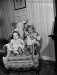 Ann Webb and Jann Webb, daughters of Mr. and Mrs. F. B. Webb, wide-eyed over their Easter gifts.
