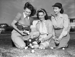 Golfers (from left) Mrs. J. T. Austin, Ann Martin, and Rose Alice Palmer preparing to hit some practice woods.