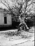 Gusts of wind nearly toppled this tree into the kitchen of Mrs. M. B. Fry, 416 Alston, Fort Worth, Texas who was working in the room at the time. Weakened by tree surgery, this giant hackberry fell. In the picture is a toppled tree that has parts of its branch fallen and its base almost totally uprooted. The tree stood on the adjoining lot at 412 Alston. Published in the Fort Worth Star-Telegram morning edition, March 18, 1947.