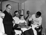 J. M. North, his son Phil, and his grandson Kennon during a haircut.